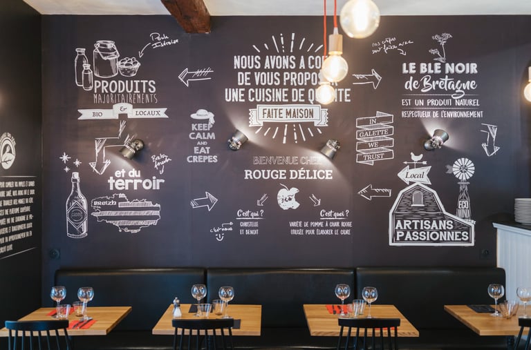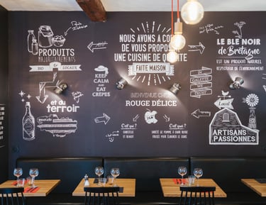 Le décor mural transforme vos espaces sans travaux lourds. Visuels graphiques, typographies ou fresques pour créer une ambiance cohérente et impactante.